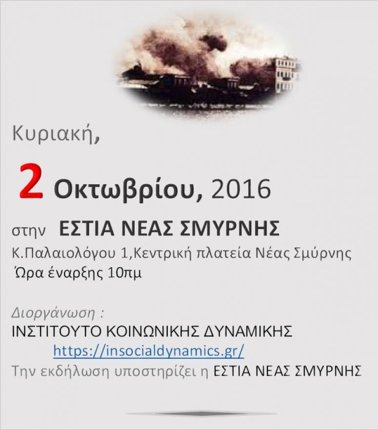 Το Ινστιτούτο Κοινωνικής Δυναμικής και η ΕΣΤΙΑ Νέας Σμύρνης πραγματοποιούν επιστημονική ημερίδα με θέμα «Η Μικρασιατική καταστροφή ως πολύ-επιστημονικό παιδαγωγικό μέσον».