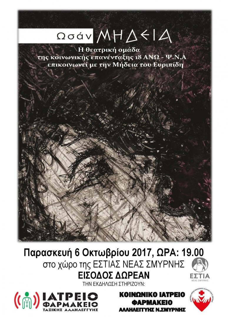 Η θεατρική ομάδα Κοινωνικής επανένταξης 18 Άνω παρουσιάζει, στην ΕΣΤΙΑ Νέας Σμύρνης την θεατρική παράσταση «Ωσάν Μήδεια».