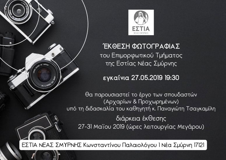 Διάρκεια έκθεσης: Δευτέρα 27/5 /2019 – Παρασκευή 31/5/2019