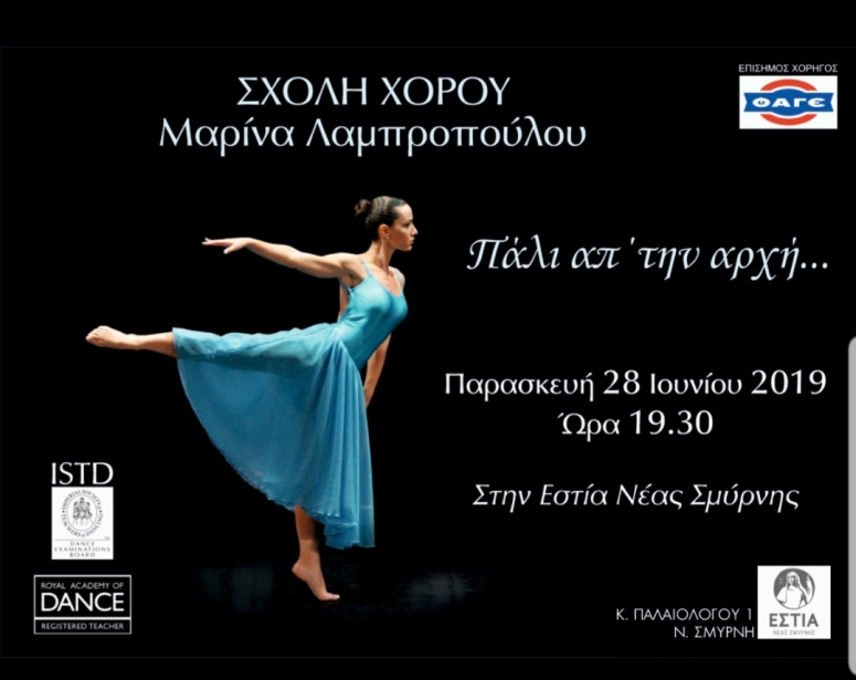 Η σχολή χορού "Μαρίνα Λαμπροπούλου" θα παρουσιάσει ένα ανοιχτό μάθημα (Open Class) με τίτλο "ΠΑΛΙ ΑΠΟ ΤΗΝ ΑΡΧΗ".