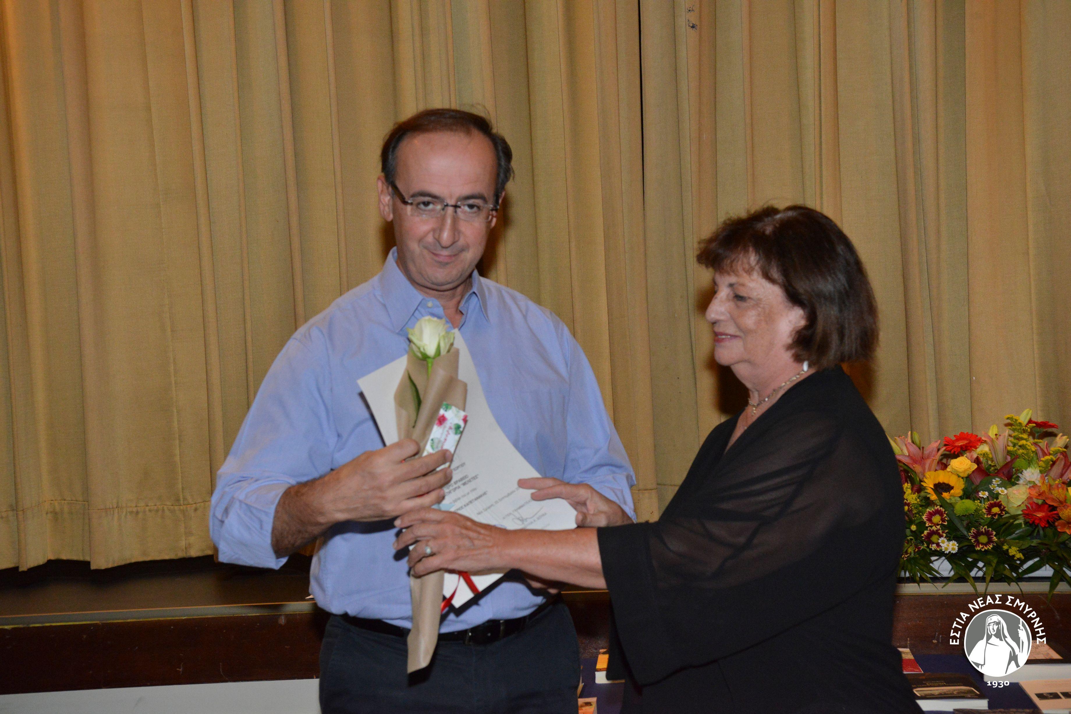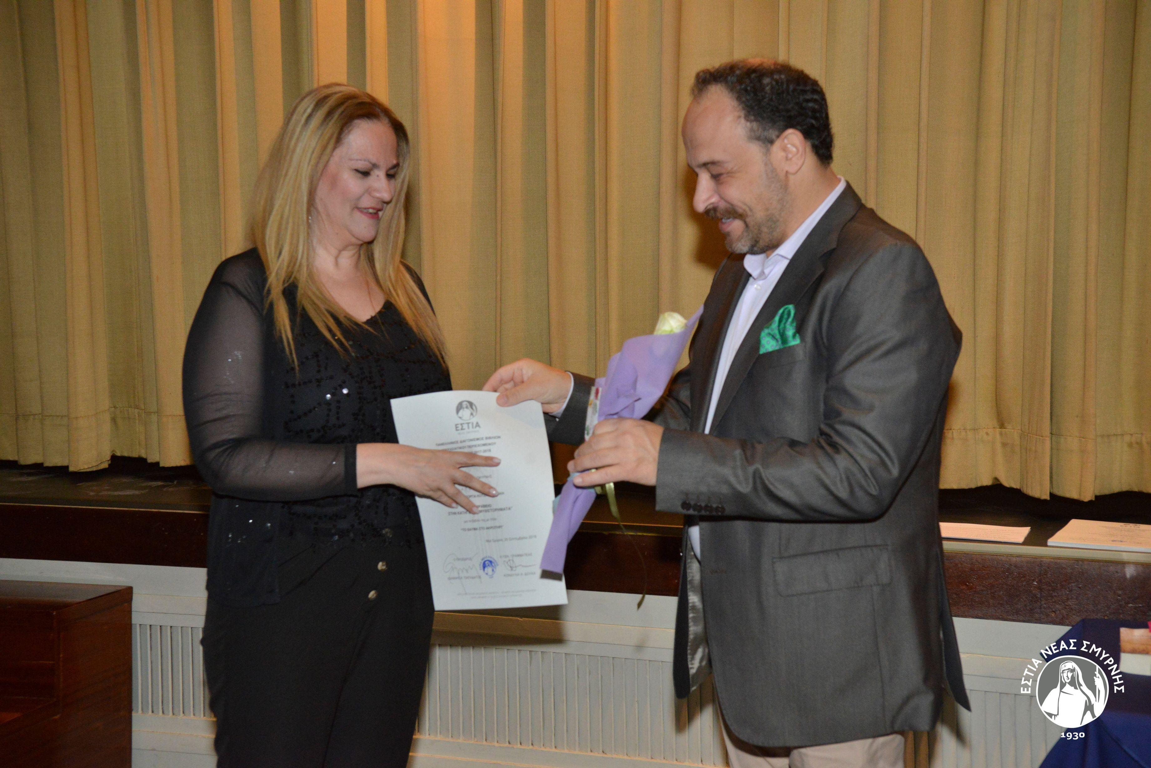 Η ΕΣΤΙΑ Νέας Σμύρνης, σας προσκαλεί την Παρασκευή 20 Σεπτεμβρίου 2019 και ώρα 19:00, στην εκδήλωση απονομής βραβείων και επαίνων στους διακριθέντες συγγραφείς βιβλίων Μικρασιατικού περιεχομένου που εκδόθηκαν τα έτη 2016 –2017- 2018 και πήραν μέρος στο σχετικό λογοτεχνικό διαγωνισμό της ΕΣΤΙΑΣ.