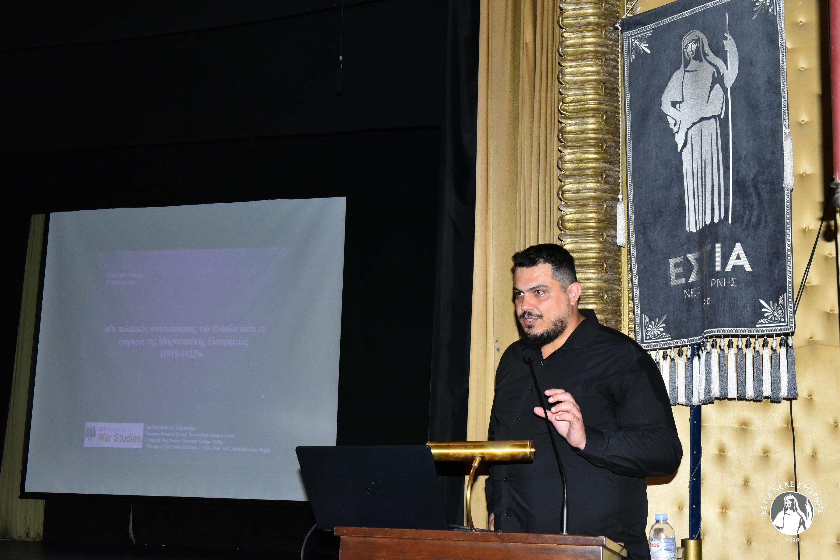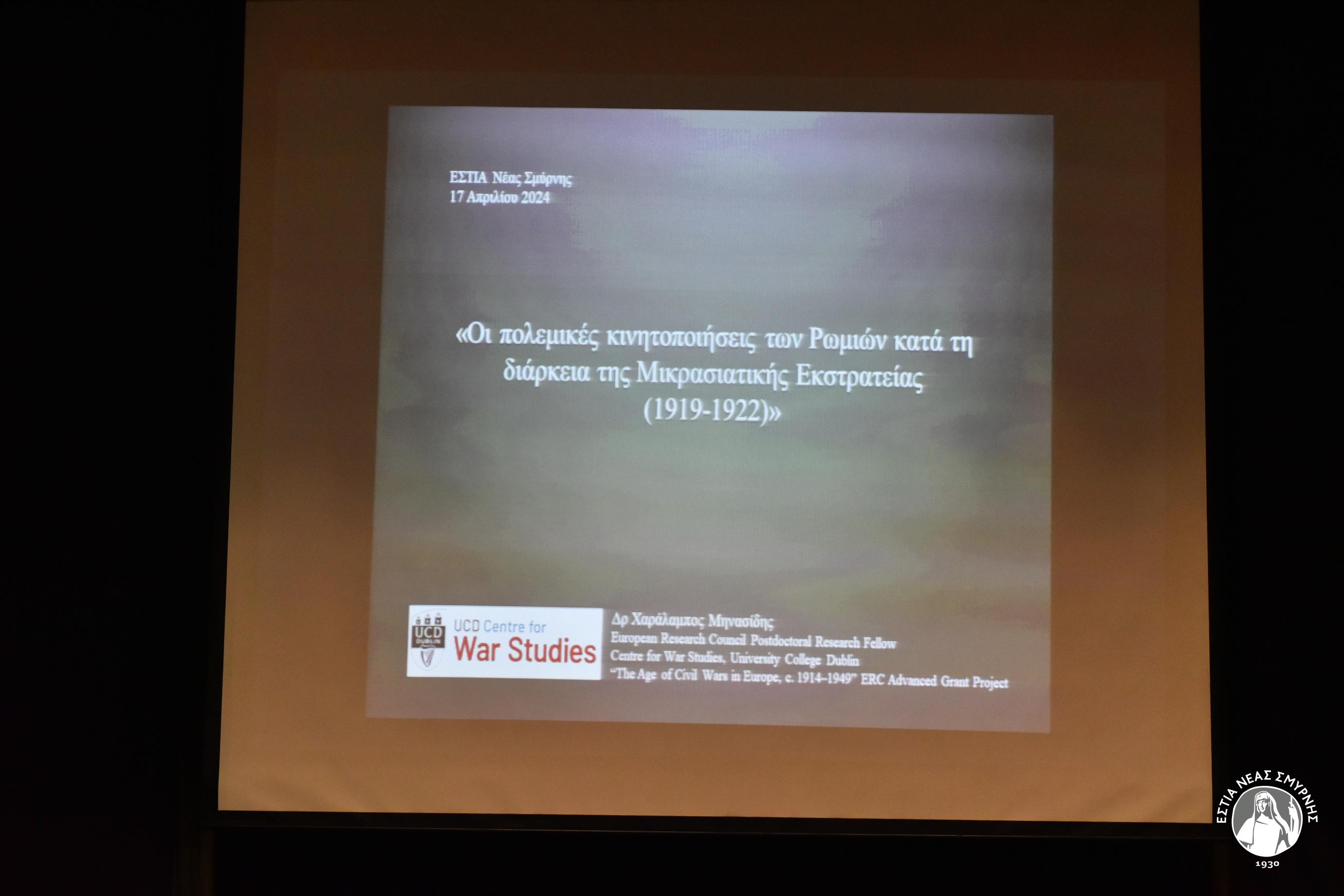 - Η ομιλία διερευνά τις πολεμικές κινητοποιήσεις των Ρωμιών από τον ελληνικό και τουρκικό στρατό κατά τη διάρκεια της Μικρασιατικής Εκστρατείας.