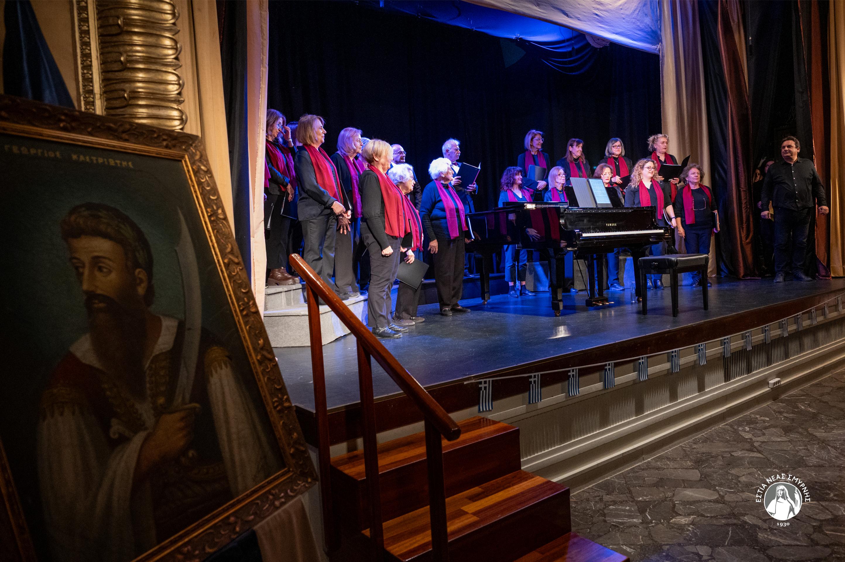 - Στο καλλιτεχνικό μέρος της εκδήλωσης θα συμμετάσχει η Μικτή Χορωδία της ΕΣΤΙΑΣ Νέας Σμύρνης, παρουσιάζοντας τραγούδια εμπνευσμένα από την Ελληνική Επανάσταση. Τις χορωδιακές διασκευές υπογράφει ο μαέστρος Άγγελος Βελεγράκης, ο οποίος θα συνοδεύσει τη χορωδία στο πιάνο.