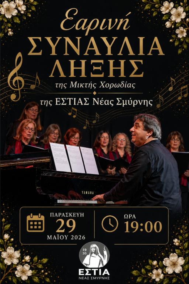 Η νεοσύστατη Μικτή Χορωδία της ΕΣΤΙΑΣ Νέας Σμύρνης παρουσιάζει τη δουλειά μιας ολόκληρης χρονιάς, σε ένα ξεχωριστό πρόγραμμα που λειτουργεί και ως ένας μουσικός αποχαιρετισμός πριν την καλοκαιρινή ανάπαυλα.